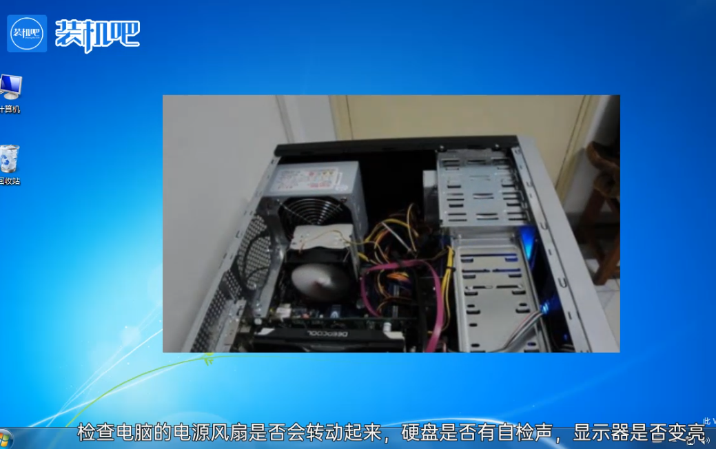 1、检查电脑的电源风扇是否会转动起来,硬盘是否有自检声,显示器是否变亮。