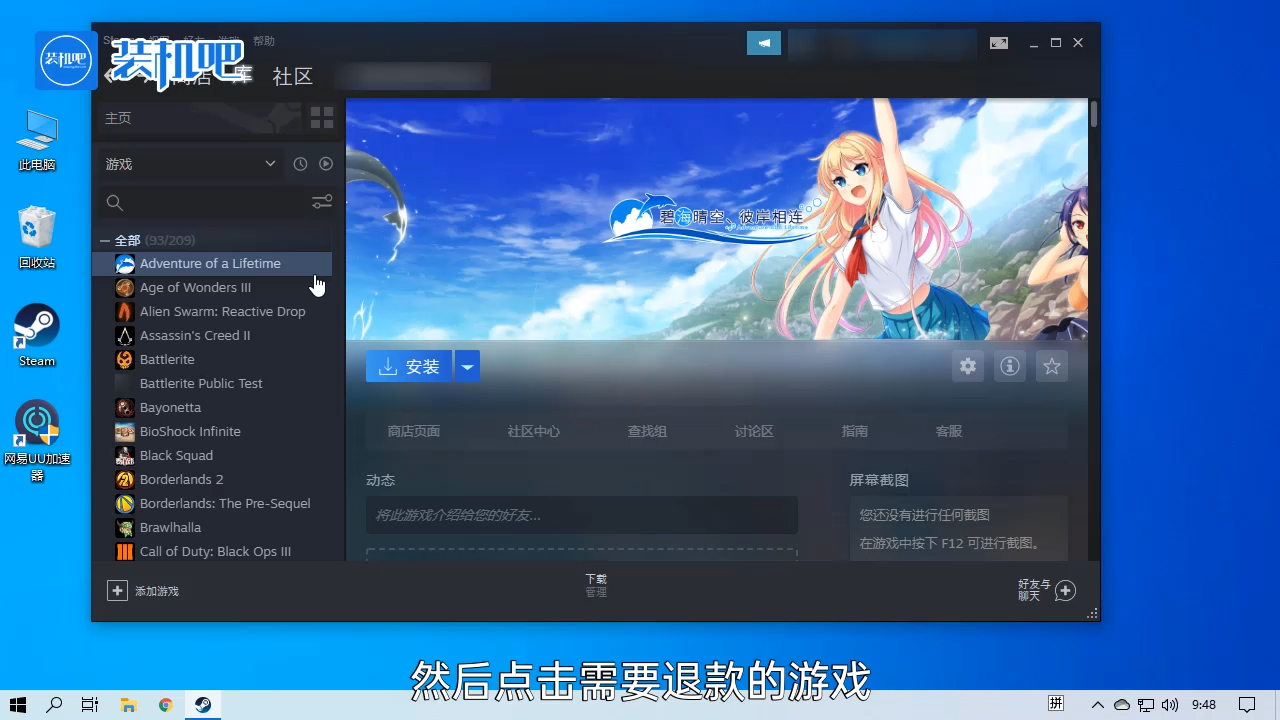 1、打开Steam游戏平台,在库中点击需要退款的游戏。