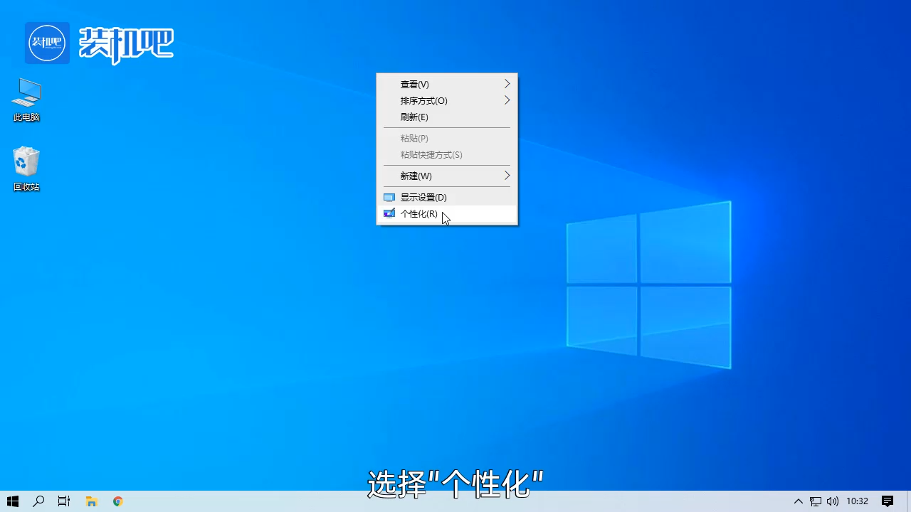 1、鼠标右键桌面,选择“个性化”。