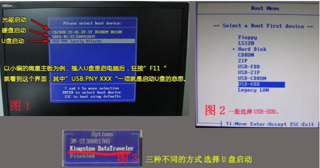2、重启电脑按“一键U盘启动快捷键”选择U盘启动,不同主板按键可能不同但无非都是(F12、F11、Del、ESC等)几个,可以一一尝试。