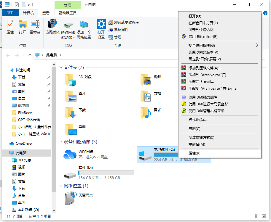 1、打开我的电脑找到c盘点击“属性”按钮。