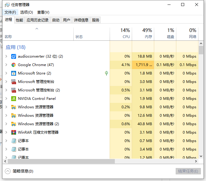 2、看一下内存和cpu哪一个占用率过高导致机器跑不动。