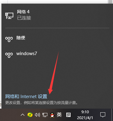 1、点击网络图标,然后点击“网络和internet设置”。下图: