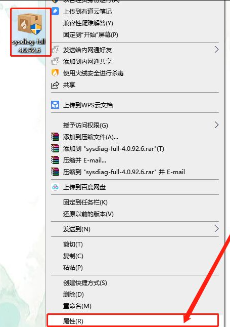 1、右键选择需要打开的软件程序文件,选择“属性”。