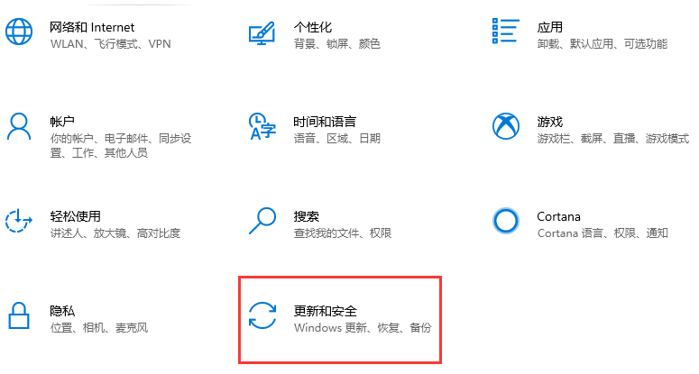 1、通过组合键“win+i”打开设置。然后,在弹出的Windows设置窗口中,点击更新和安全的图标。