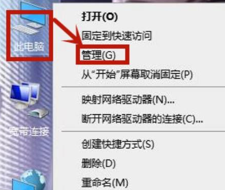 1.鼠标右键点击桌面上的“此电脑”,在打开的菜单中点击“管理”进入;
