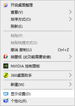 1、首先我们在windows10的桌面空白处点击鼠标右键,选择显示设置;