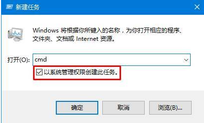 1、最简单的就是先重启电脑。按下【ctrl+shfit+esc】打开任务管理器,点击【文件】-【运行新任务】,勾选【以系统管理权限创建此任务】,在框中输入:cmd 点击确定。