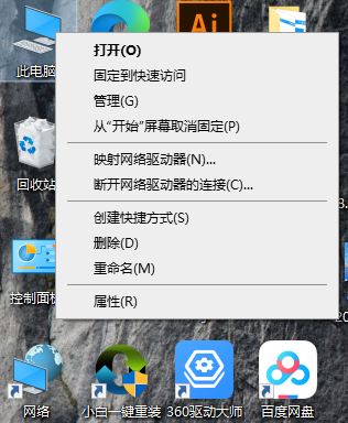 1、右键Win10系统桌面上的这台电脑,选择弹出菜单的属性。