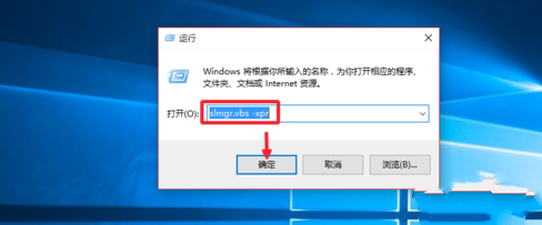 1.首先按下win+r键,输入命令slmgr.vbs-xpr,单击确定。