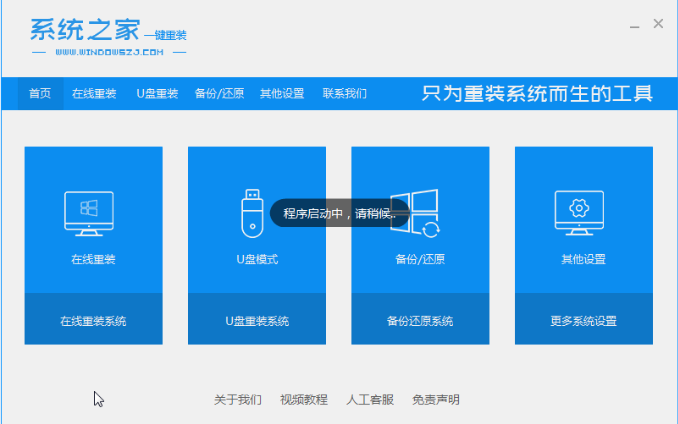 1、回到桌面后,打开我们刚刚下载好的重装系统软件,也就是系统之家重装系统这个软件,进入到该软件的首页之后,单击在线重装功能。