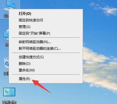 1、使用鼠标右键点击此电脑在出现的菜单选项中选择【属性】功能。
