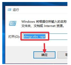 1、按组合按钮“win+r”打开“运行对话框”,输入命令“slmgr.vbs -xpr”,点击确定;