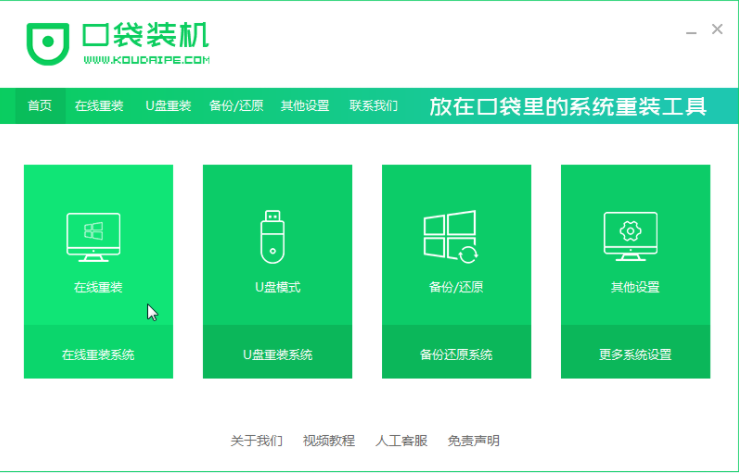 1、首先我们下载一个口袋装机的系统重装软件。