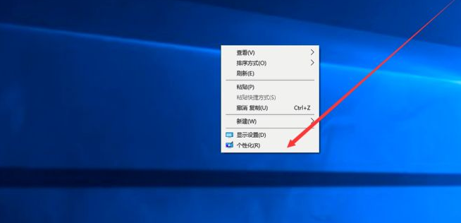 1.首先我们在桌面上鼠标右键空白处,出现菜单后,点击”个性化“选项。