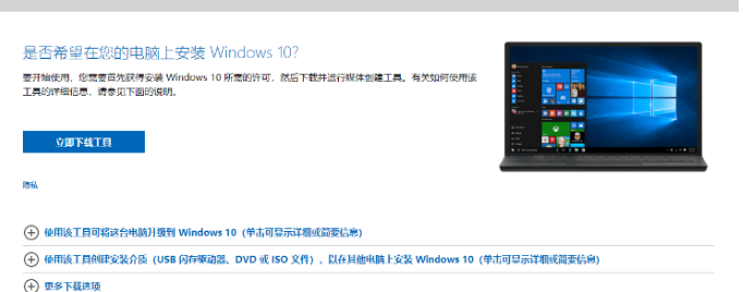 1、通过在windows官网内下载在线升级系统工具,通过点击立即下载工具并完成下载。
