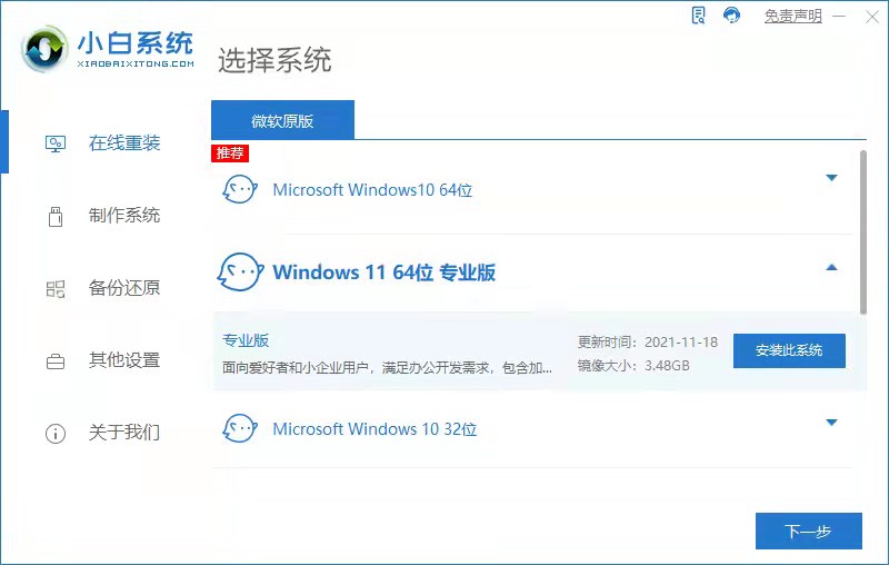 2.我们可以选择喜欢的系统软件进行下载,勾选好后进入【下一步】。