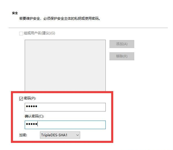 这一步勾选密码并且输入密码和确认密码,然后点下一步: