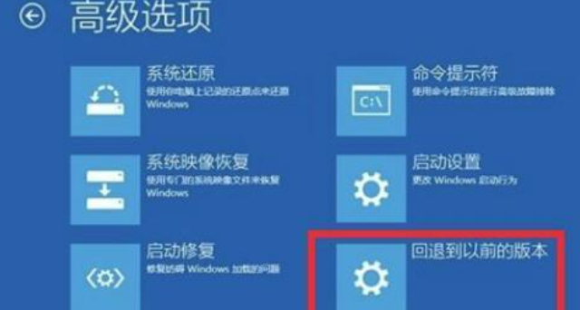4、在高级选项中,找到这个【回退到以前的版本】选项按钮并点击。