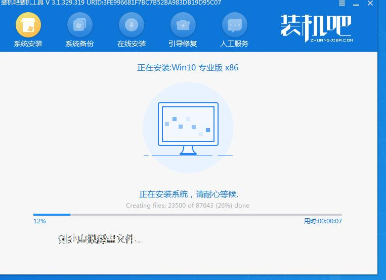 7、重启以后,会进入装机吧界面,进行安装系统。