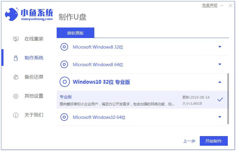2、选择需要安装的win10系统,点击开始制作。