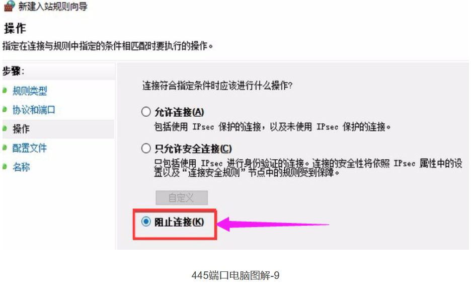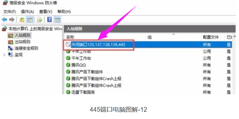 点击“协议和端口”,可以看到阻止连接的本地端口是之前设置的135,137,138,139,445,说明网络端口135,137,138,139,445已经阻止连接