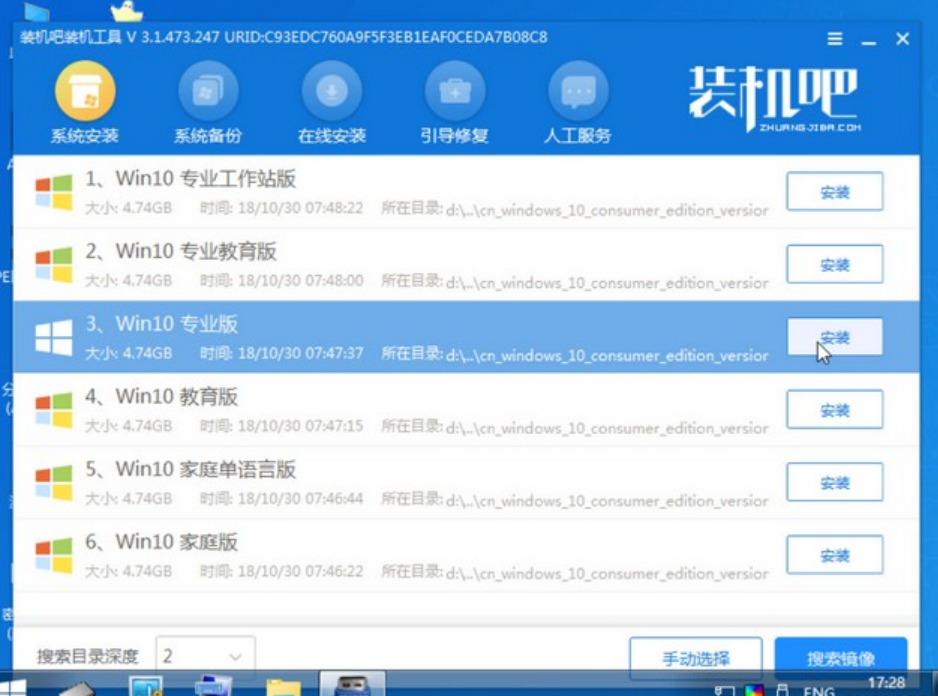 装机吧u盘重装win10系统步骤