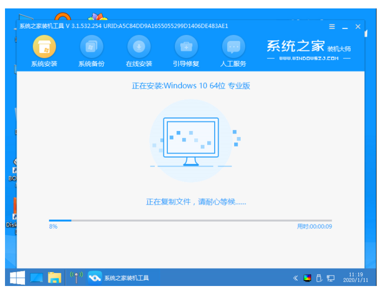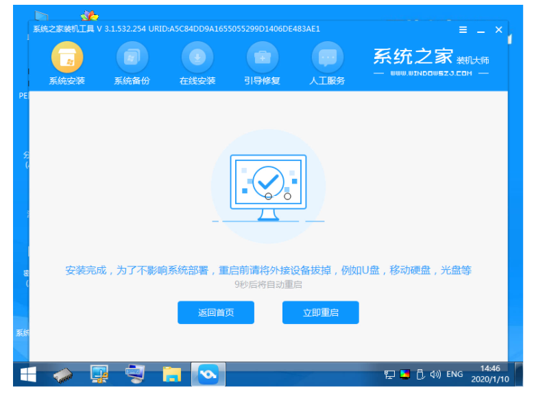 6、接下来我们会返回到pe系统,打开系统之家装机工具界面继续进行安装。