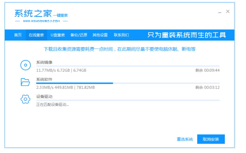 1、我们将系统之家重装软件下载好并打开。然后选择在线重装系统。