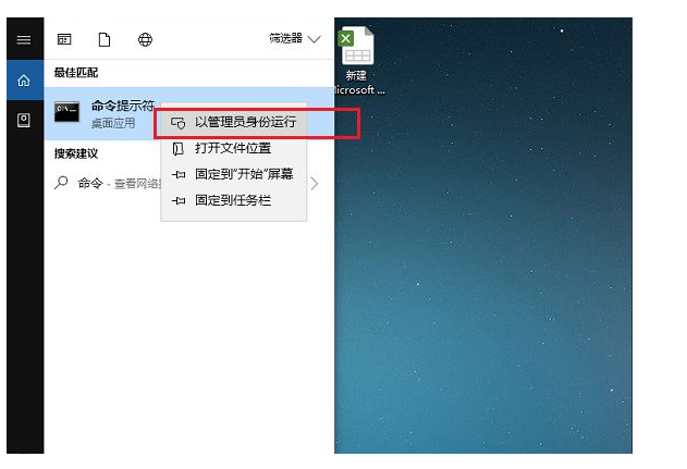 1、在win10系统任务栏搜索框中输入“命令提示符”,找到之后,右键以管理员身份运行。
