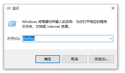 1、在win10系统上按win+R键打开运行,输入“dxdiag”,点击确定。