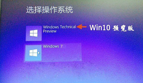 8、Win7下安装Win10成功后,以后电脑每次重启或者开机后,会进入系统选择界面,用户可以自由选择进入Win10或者Win7系统,如下图所示。