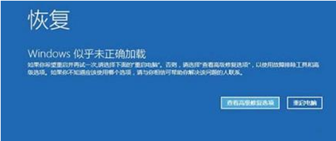 2、若是不能进入系统,强制关机电脑再开机,重复此操作三次进入恢复页面,点击查看高级修复选项;