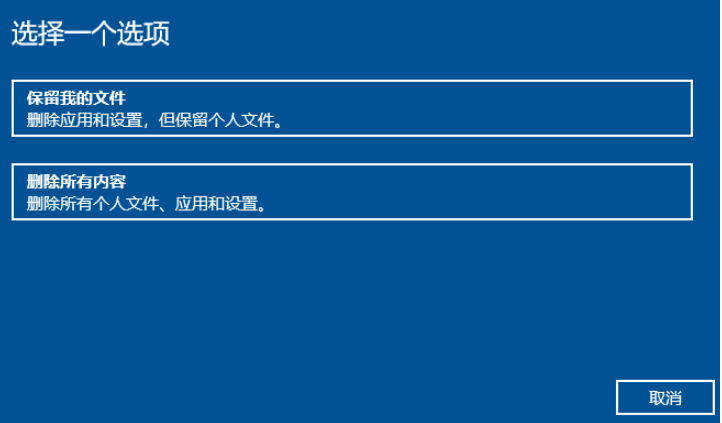 3、根据实际情况选择一个选项就可以恢复出厂设置,一般电脑系统盘有资料未保存的话,记得选择保留我的文件选项。
