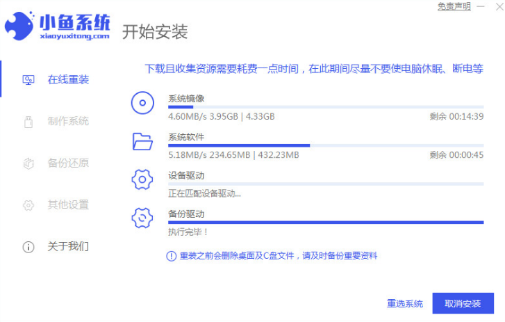 5.小鱼自动开始安装win10系统,等待安装完成重启电脑进入新系统。