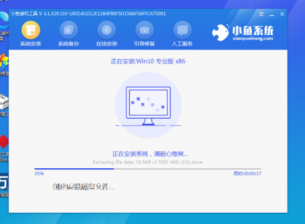 6、进入电脑后,小鱼工具会自动开始安装win10系统,在此期间耐心等待就好。