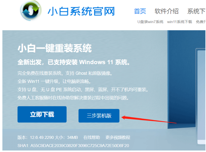 2、下载好之后,打开小白三步装机版,选择所要安装的win10系统进行安装即可。