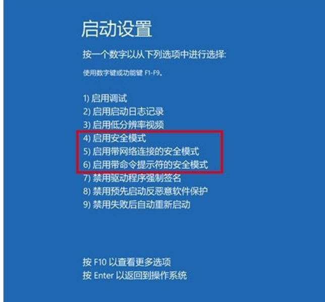 6. 在菜单中选择4、5、6项都是安全模式选项,即可进入对应的安全模式。