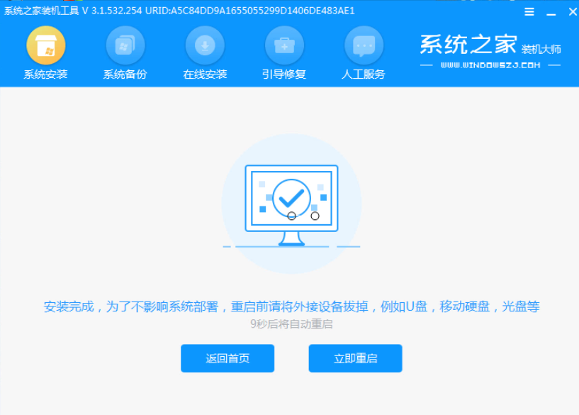 9、等待安装完成,选择重启。
