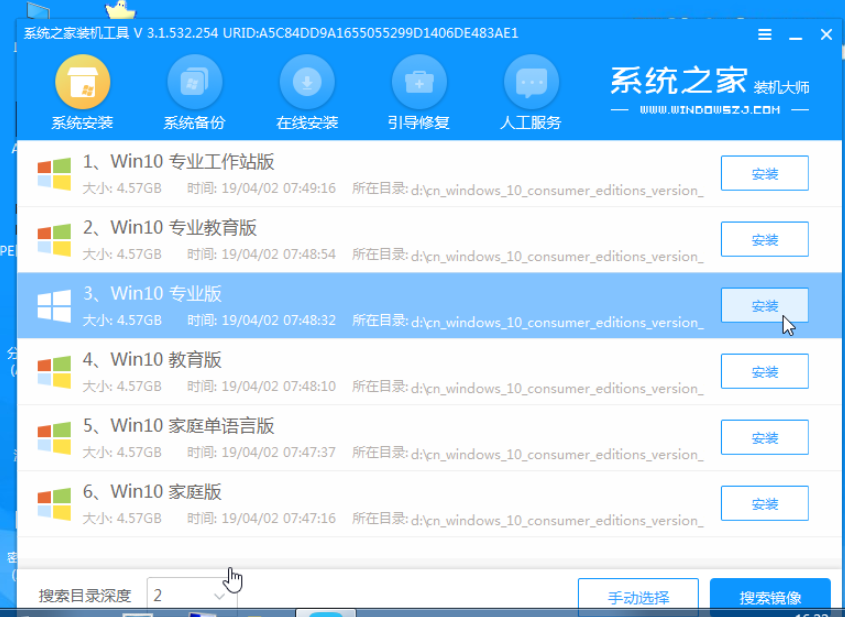 2、选择win10操作系统安装。