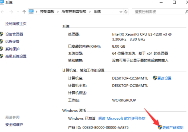 1.首先我们用鼠标右击此电脑,然后点击属性。拉到下面找到“更改产品密钥”