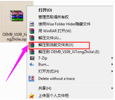 2、点击打开解压后的包,鼠标右键点击选择以管理员身份运行OEM9。