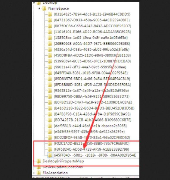 HKEY_LOCAL_MACHINE/SOFTWARE/Microsoft/windows/currentversion/explorer/desktop/namespace