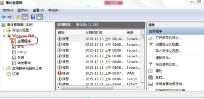 7、 最后,双击事件查看器--应用程序,即可找到。