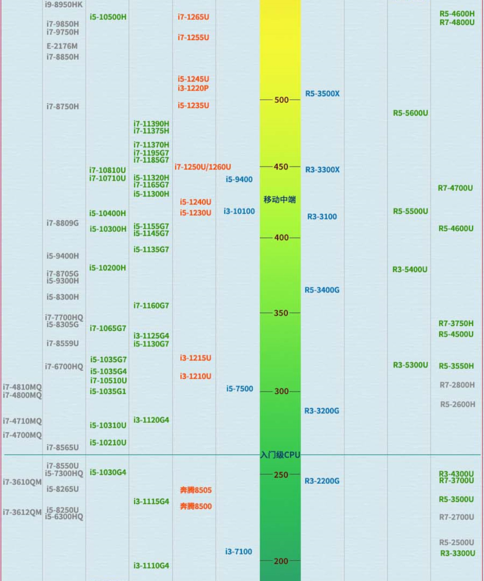 笔记本cpu天梯图2022年5月版