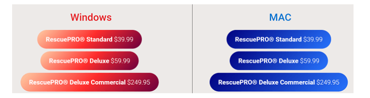 缺点:需要预先购买激活码才能使用,费用以美元计算,最低档的收费也要39.99美元,如果您尝试恢复高清视频,甚至需要付费59.95美元,最高可达249.95美元。而如果需要免费版的试用版(无法预览),还需要发送邮件申请才可以。