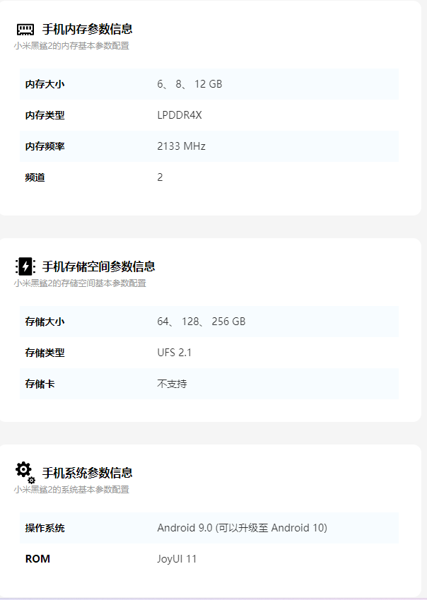 总结:以上就是小编与大家整理分享的米黑鲨2参数配置详情介绍的全部内容,有需要的朋友可以收藏,希望能帮助到大家。