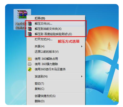 选择要用鼠标打开的rar文件,然后右键单击菜单栏。您可以看到3种减压方式。让我们分别讨论这三个减压的含义。