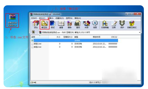 首先,双击鼠标以打开需要打开的rar文件,然后出现一个解压提示框,然后在菜单栏中单击“提取到”。