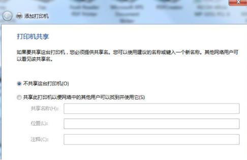 11、设置打印机是否共享,如果是个人电脑就设置为不共享。